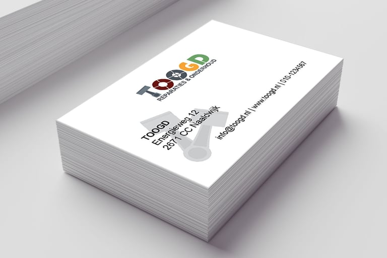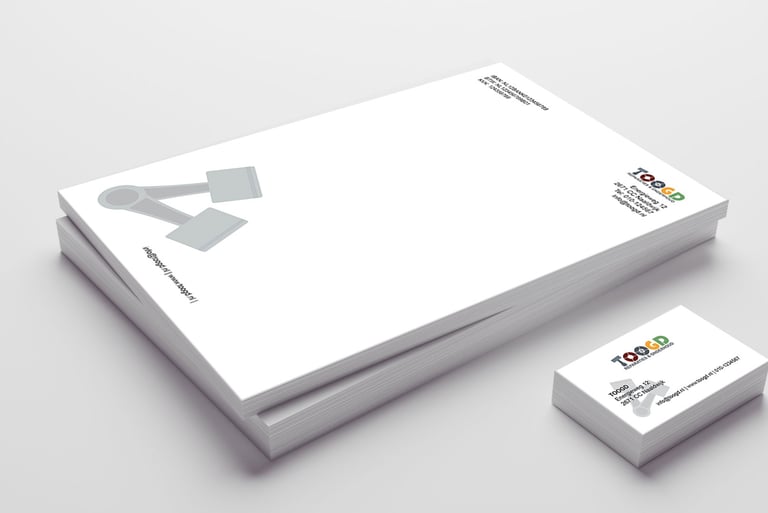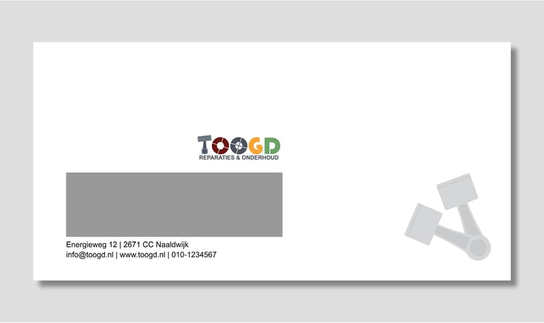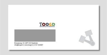 Er moest een logo, briefpapier, envelop en visitekaartje gemaakt worden. Die de identiteit van TOOGD benadrukt.