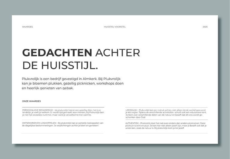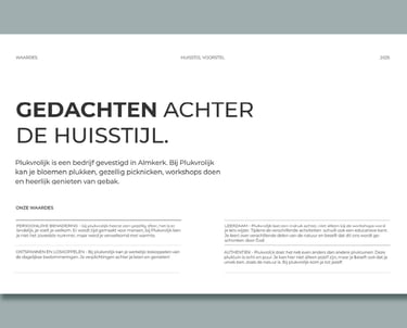 We starten met een gesprek waarin jij jouw wensen, doelen en eventuele voorkeuren met me deelt. We bespreken praktische zaken zoals het gebruik van het ontwerp, je doelgroep en eventuele bestaande huisstijlelementen. Ook stel ik gerichte vragen om de kern van jouw merk of bedrijf te begrijpen. Op basis hiervan formuleer ik 3 tot 5 kernwaarden die richting geven aan het ontwerp.