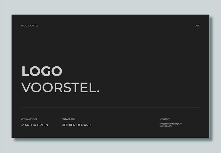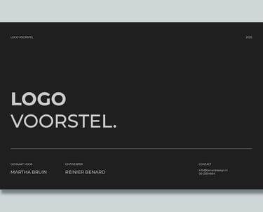 Afhankelijk van het project ontwerp ik één of meerdere voorstellen (bijvoorbeeld logo’s). Elk voorstel is gebaseerd op de besproken kernwaarden en de gekozen sfeer. In een duidelijke presentatie leg ik uit waarom ik bepaalde keuzes heb gemaakt op het gebied van kleur, typografie en vorm, altijd onderbouwd met ontwerpprincipes.
